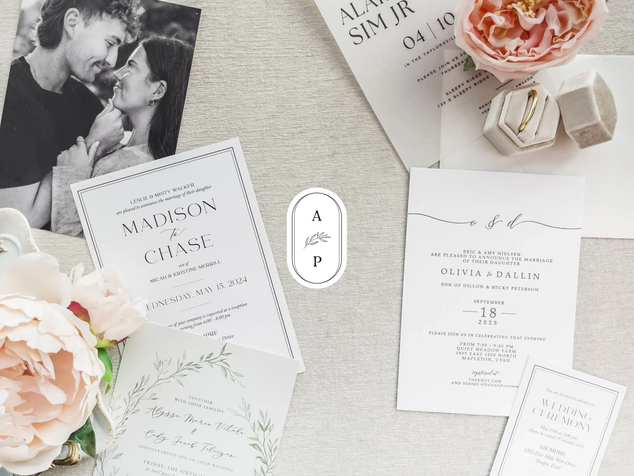 Most full-service invitation companies offer coordinated suites that include RSVP cards, detail cards, and envelopes. Choosing a matching set ensures everything feels cohesive and intentional. Anthology Print provides complete invitation suites with optional inserts and envelope addressing for a polished final result.